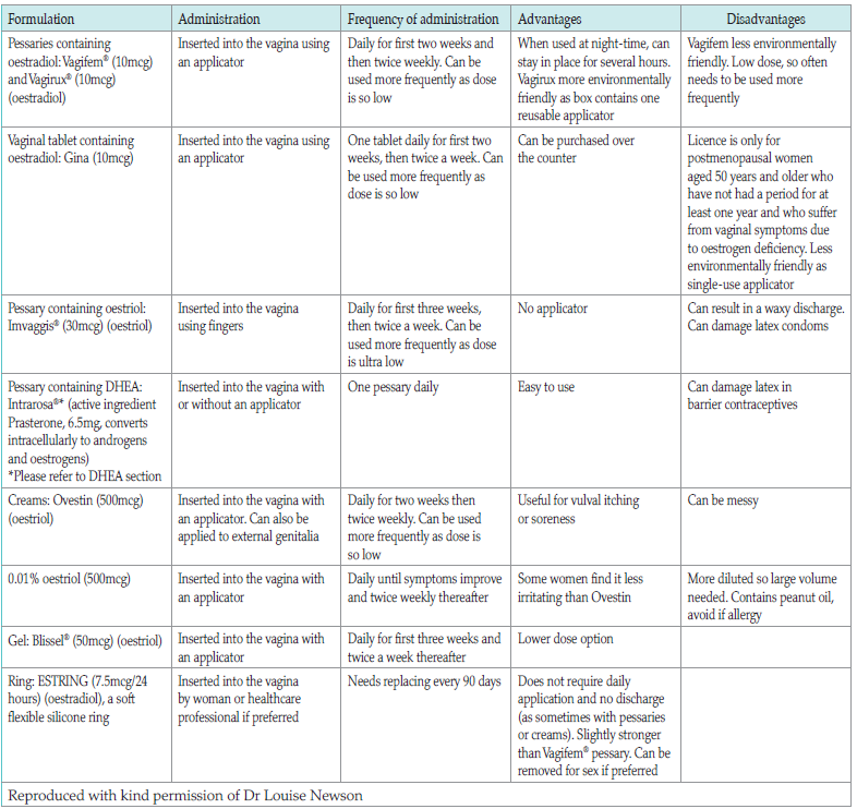 Hirschberg AL, Bitzer J, Cano A, et al (2021) Topical estrogens and nonhormonal preparations for postmenopausal vulvovaginal atrophy: an EMAS clinical guide.
